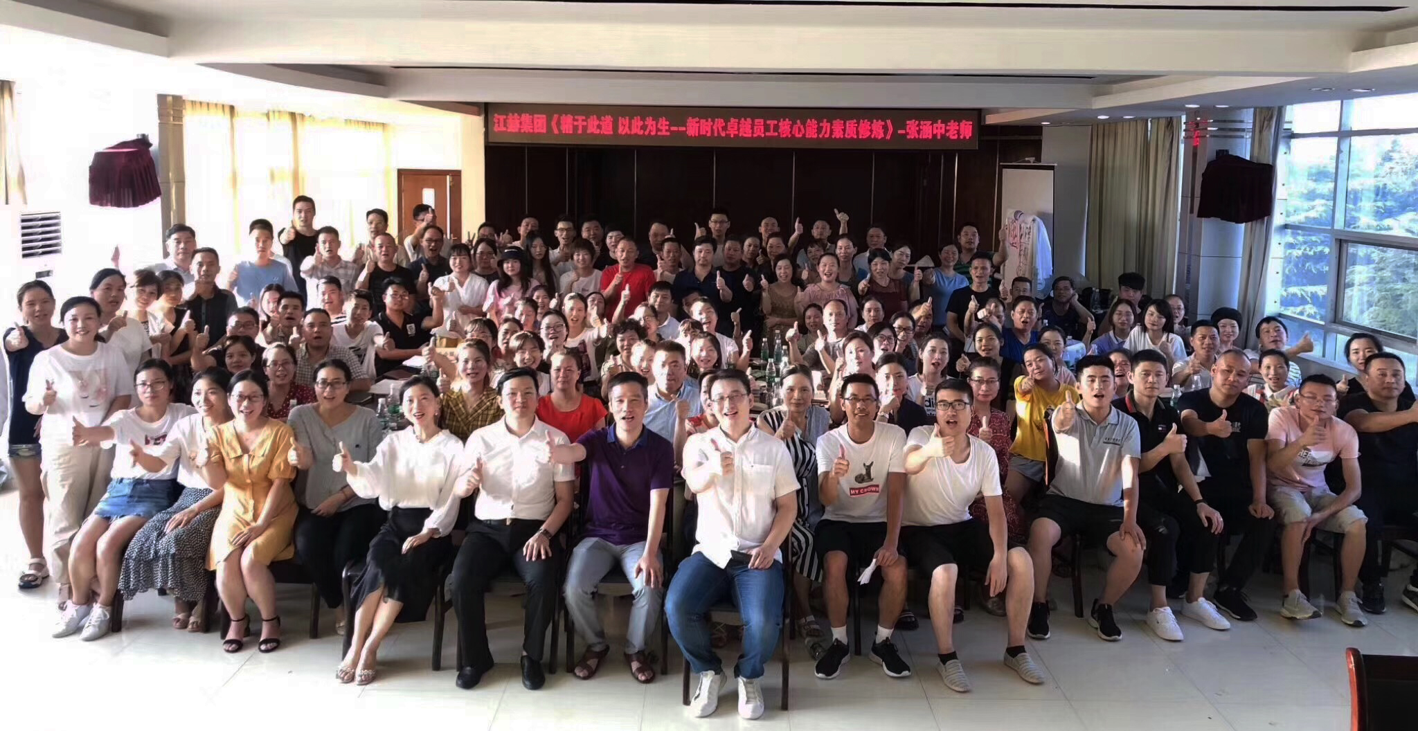 2019年8月11日上午9點(diǎn),由湖北江赫集團(tuán)舉辦的《精于此道 以此為生——新時(shí)代卓越員工核心能力素質(zhì)修煉》培訓(xùn)正式開啟。來自江赫集團(tuán)的100多名中高層管理人員參加了此次培訓(xùn)。本次培訓(xùn)特別邀請(qǐng)了國內(nèi)知名培訓(xùn)機(jī)構(gòu)——聚成企業(yè)管理顧問公司張涵中老師親自主講。本次課程圍繞著如何“打造卓越員工素質(zhì)、提升管理者素養(yǎng)”展開了深入的探討,以小組競賽形式,充分調(diào)動(dòng)每一名學(xué)員的參與積極性。現(xiàn)場氣氛緊張而活躍,有不少新穎的管理思路讓現(xiàn)場學(xué)員耳目一新,受益匪淺!雖然天氣炎熱,但現(xiàn)場交流的熱度更高。伴隨著本次競賽小組前三名的公布,此次培訓(xùn)活動(dòng)圓滿結(jié)束。會(huì)后大家合影留言,定格這美好瞬間。期待下次再會(huì)!