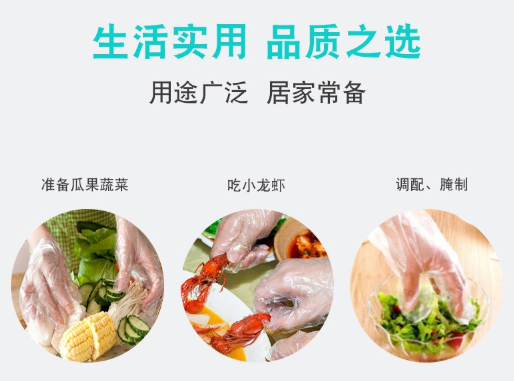 用途:一次性PE手套多用于家庭清潔,化學(xué)檢驗,機械園藝,食品、衛(wèi)生及工農(nóng)業(yè)防護,染發(fā),護理洗滌,用餐(如吃龍蝦,大骨頭)等等,佩戴可免去洗手之不便。