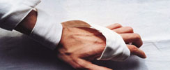 人字形包扎用于能彎曲的關節,如肘部、膝部,還有手和腳跟,方法如下: ·先將繃帶在患者肢體關節中央處纏繞一圈做固定,然后繞一圈向下,再繞一圈向上,反復向下、向...